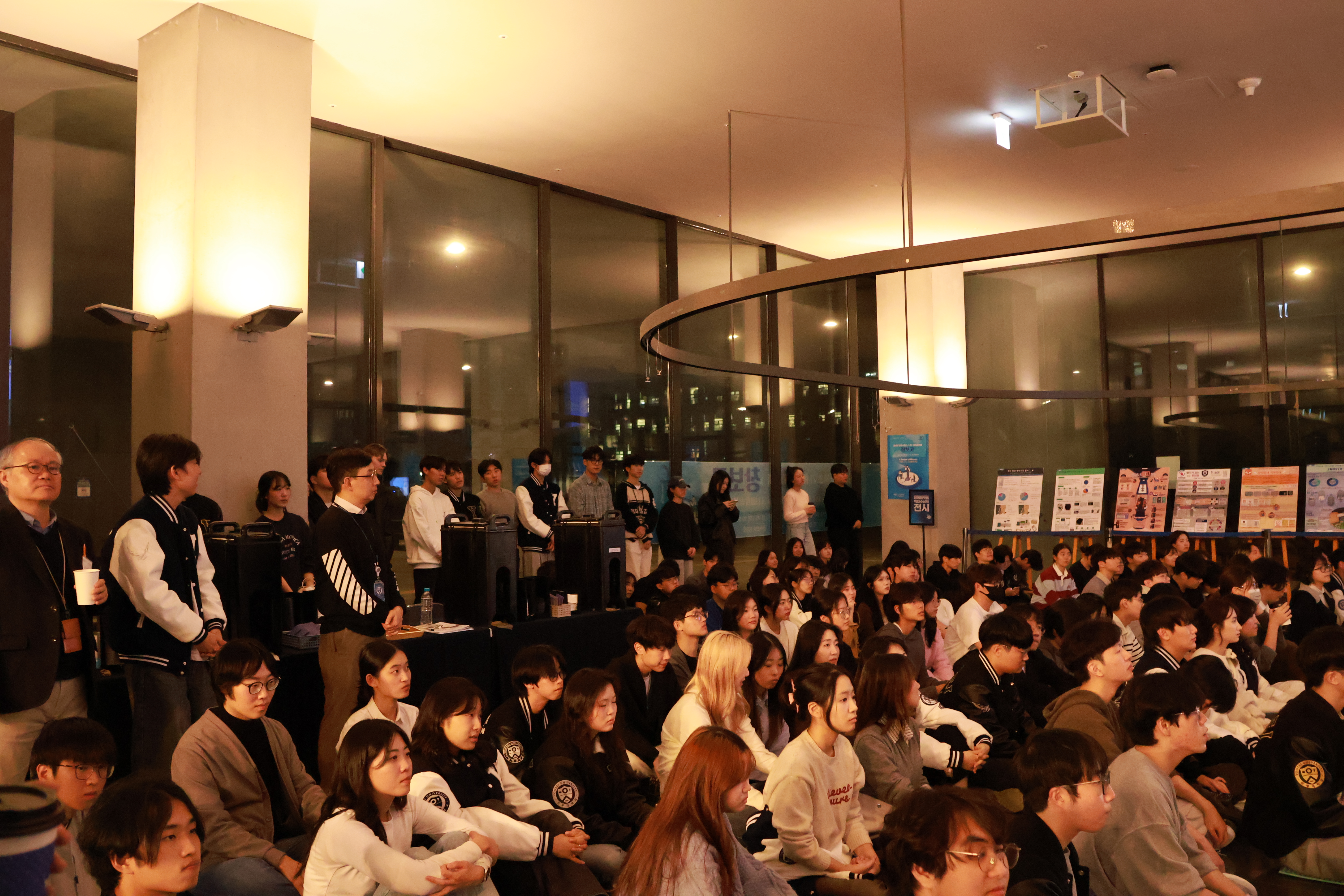 창플리 예심은 11월 13일(목) 진리관B 1층에서 진행되었으며, 총 46개 팀 212명의 학생이 참여해 치열한 경쟁을 펼쳤다. 이번 예심은 학부대학 한봉환 교수, 학부대학 김성수 교수, 학부대학 최기영 교수, 인공지능융합대학 고정길 교수, 그리고 넥슨코리아 강경중 파트장으로 구성된 5명의 심사위원단이 평가를 맡았다. 피어멘토단 역시 김남훈 단장, 권양현 부단장, 김민석 부단장, 정다빈 부단장이 참여해 평가에 참여하며 학생 중심의 창의·협업 문화를 강화하는 데 중요한 역할을 했다.