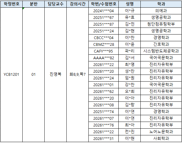 2026-1학기 글쓰기(심화) 교과목의 수강대상 선발자 명단을 공지합니다.