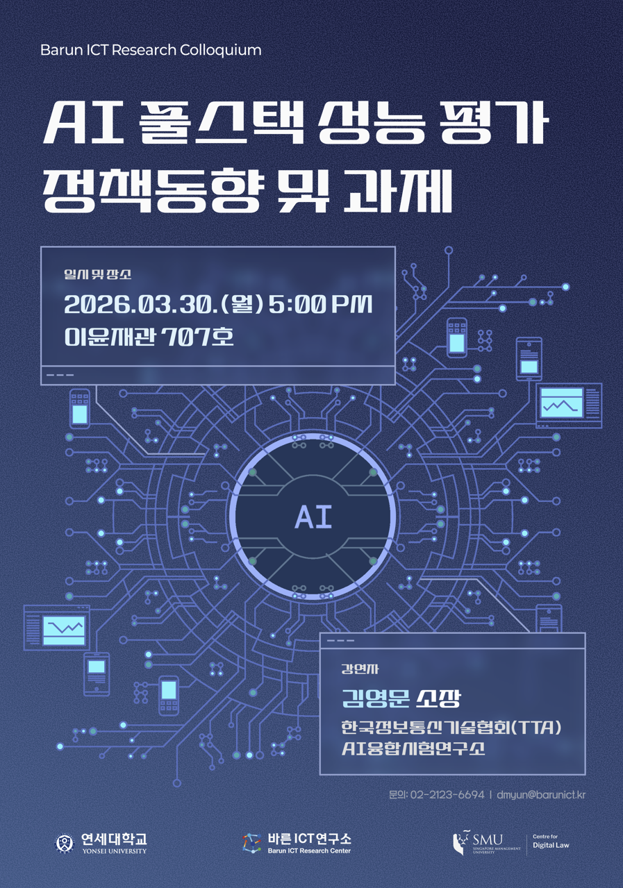 [연세대학교 바른ICT연구소] 3월 30일 AI 정책 콜로키움 개최