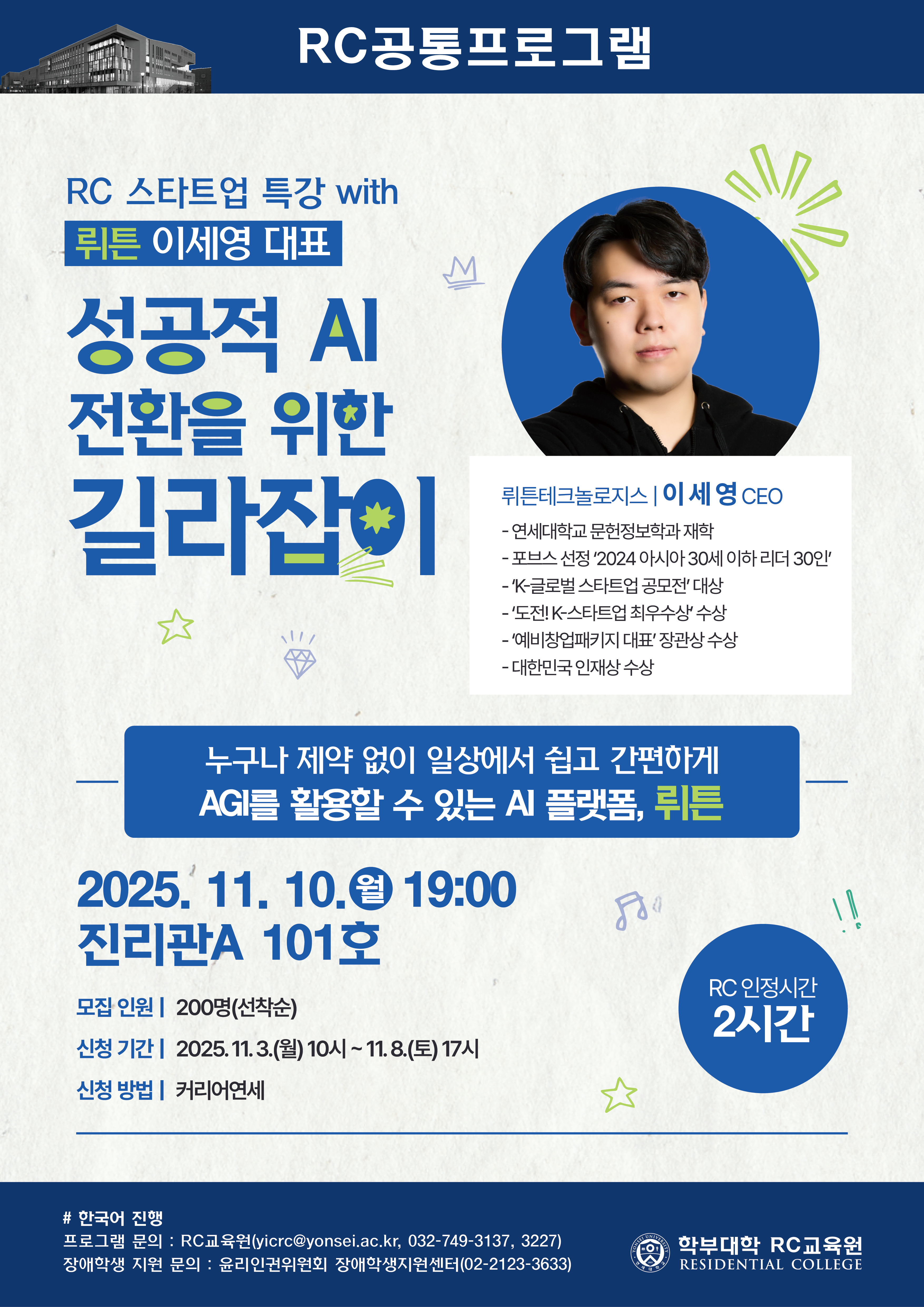 2025-2학기 RC 스타트업 특강 2 <이세영 대표(뤼튼)- "성공적인 AI 전환을 위한 길라잡이">